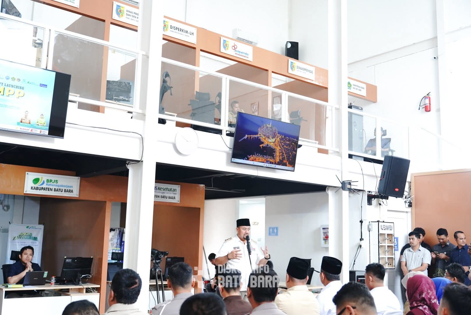 upati Batu Bara, Bapak H. Baharuddin Siagian, S.H., M.Si., bersama Wakil Bupati Batu Bara, Bapak Syafrizal, S.E., M.AP., melakukan Soft Launching Mal Pelayanan Publik (MPP) sebagai langkah uji coba pelayanan terpadu di satu tempat, Selasa (14/10/2025). Mal Pelayanan Publik yang berlokasi di Indrapura, tepat di depan Lapangan Indrapura, menyediakan 18 tenant pelayanan, yakni DPMPTSP, Disdukcapil, Bapenda, Dinas Sosial PPPA, Dinas Ketenagakerjaan, Perindustrian dan Perdagangan, Dinas PUTR, Dinas Perumahan, Kawasan Permukiman dan Lingkungan Hidup, Polres Batu Bara, Kejari, Kantor Pajak, Perwakilan Kantor Pertanahan, UPT Samsat, Bank Sumut, Kementerian Agama, BPJS Kesehatan, BPJS Ketenagakerjaan, Badan Narkotika Nasional, serta Kantor Imigrasi Kelas II TPI Tanjung Balai. MPP Batu Bara juga dilengkapi dengan sarana dan prasarana yang menunjang kenyamanan masyarakat, seperti ruang pelayanan, ruang tunggu, ruang laktasi, ruang rapat, ruang bermain anak, toilet, ATM center, area parkir umum dan khusus disabilitas, pojok baca, pojok UMKM, meja informasi, meja layanan khusus, serta meja konsultasi dan pengaduan. Dalam kesempatan uji coba tersebut, Kajari Batu Bara, Bapak Diky Oktavia, turut merasakan langsung pelayanan dengan membuat KTP dan menerima dokumennya secara langsung yang diserahkan oleh Bupati Bapak Baharuddin Siagian. Bupati Batu Bara Bapak Baharuddin menyampaikan bahwa pendirian MPP bertujuan untuk memusatkan berbagai jenis layanan publik di satu lokasi, sehingga dapat menghemat waktu dan tenaga masyarakat. “Harapan kita, Mal Pelayanan Publik ini benar-benar bermanfaat dalam rangka mendekatkan pelayanan kepada seluruh masyarakat Kabupaten Batu Bara. Di sini, masyarakat dapat mengurus berbagai keperluan seperti izin berusaha, pelayanan PKH, konsultasi hukum dengan Kejari, perpanjangan SIM, urusan pertanahan, hingga pembuatan NPWP. Semua dapat dilakukan di satu tempat — one stop service,” ujar Bupati Bapak Baharuddin. Turut hadir dalam kegiatan tersebut Kajari Batu Bara Bapak Diky Oktavia, Wakil Ketua DPRD Batu Bara Bapak Tengku Rodial, Forkopimda Batu Bara, serta para Kepala Organisasi Perangkat Daerah (OPD).